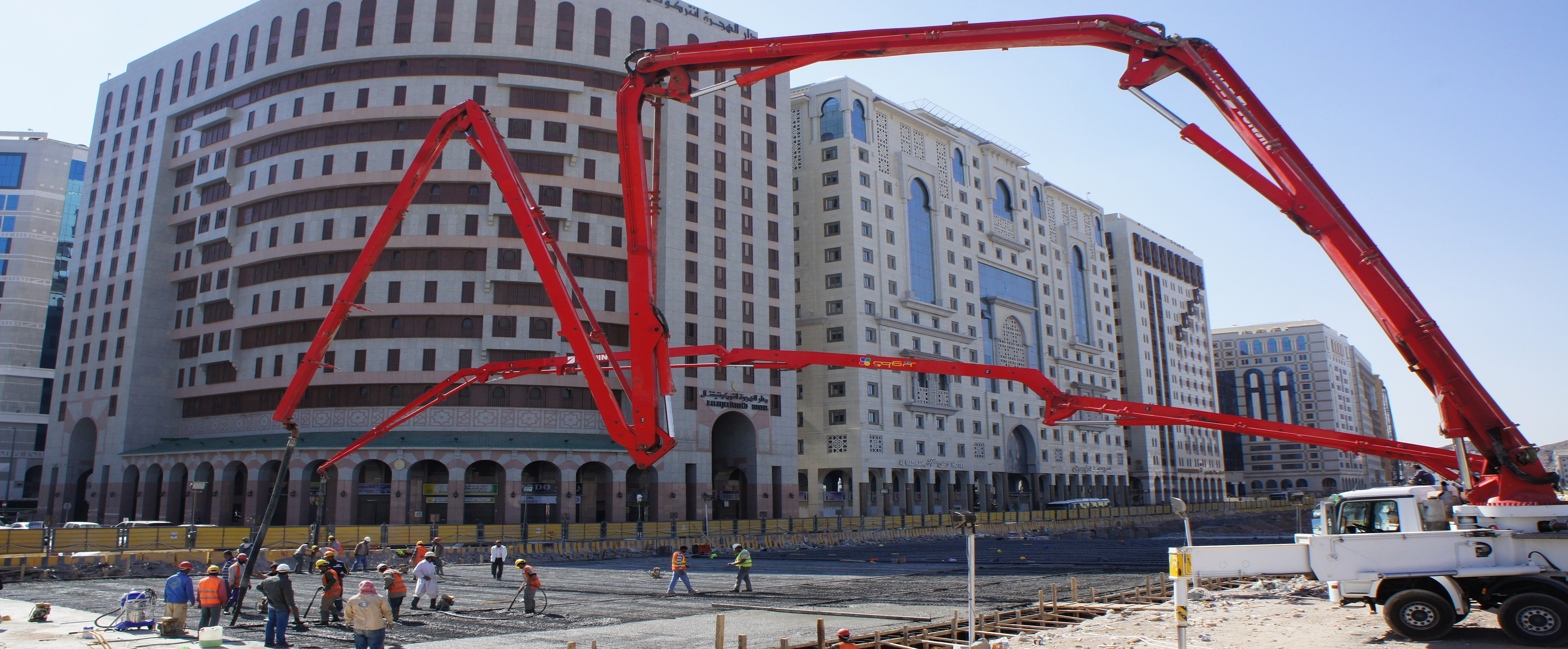 - أحدث المعدات والاليات والخلاطات والمضخات التي تصل اطوالها الى 60 متر